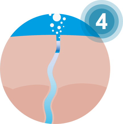 La fórmula reacciona con el agua en el conducto de sudor y forma un tapón de gel temporal.